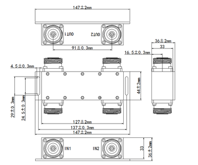 Hybrid Combiner 50521227 (2in/2out, 7-16 Female)